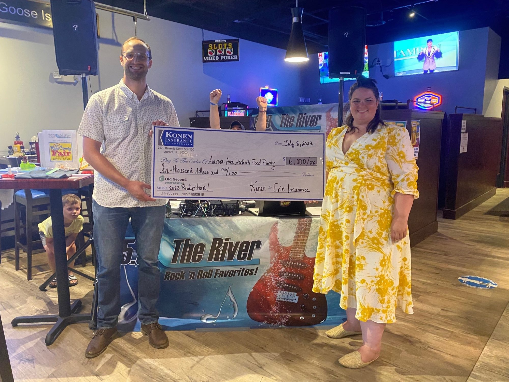 For our July Quotes for a Cause campaign, we partnered with the Aurora Area Interfaith Food Pantry. We stopped by their recent live Radiothon event to present Executive Director Shannon Cameron with a check for $6,000! Konen Insurance provided a $5,000 donation and Erie Insurance added another $1,000! The Aurora Food Pantry is committed to providing nutritious food relief to the community in a humanitarian and compassionate manner. At Aurora Food Pantry, clients select the food that best meets their needs. Modeled after a typical grocery store experience, clients take a cart and go up and down the aisles, selecting items. The number of items a client receives is determined by the size of their family and the stock available. By offering choice, less food goes to waste, clients can better plan meals for their families’ needs, and they are able to serve our community with dignity and compassion.