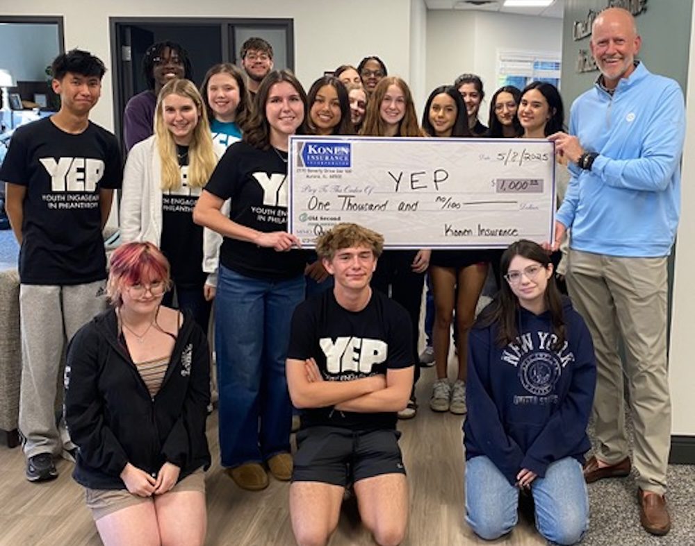 For our Quotes for a Cause Campaign, we partnered with The Community Foundation of the Fox River Valley and their Youth Engagement in Philanthropy (YEP) program. YEP was created to help local high school students explore and learn more about fundraising, grantmaking and making a difference in the community. The Community Foundation of the Fox River Valley wanted to find a way to empower the next generation by providing the opportunity for youth to fund ideas which impact and inspire them. Brian Konen, President is presenting a check to the 2024-25 YEP board. We thank The Community Foundation of the Fox River Valley for making positive differences in Aurora.