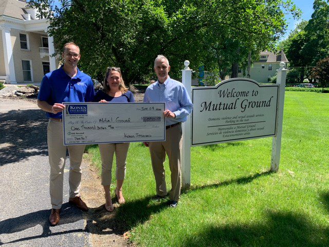For our Quotes for a Cause Campaign we partnered with Mutual Ground in Aurora. Mutual Ground provides shelter, safety, and prevention for women. Nick Knudtson, Michele Meyer, and Jerry Knutdson are pictured with a check to Mutual Ground in the amount of $1,000!